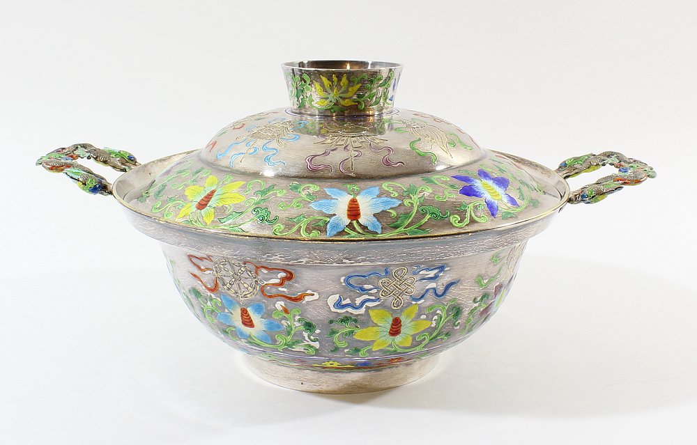 Vanwege grote belangstelling uit binnen- en buitenland brengen Chinese antiquiteiten vandaag de dag veel op. Zo heeft onderstaande emaillen schotel uit de Qing-dynastie € 8.500,00 in bod opgebracht. De Yixing trekpot met 6-karaktermerk € 6.400,00 en de wijnkan uit de Wanli-periode ging voor € 12.500,00 van de hand. De zilveren dekselschaal, uiterst zeldzaam, ging voor € 9.000,00 naar een verzamelaar in Hongkong, welke ons veilinghuis via de website wist te bereiken. Bent u ook geïnteresseerd om uw Chinees antiek bij ons onder te brengen neem dan contact op met één van onze specialisten. Wij zijn bereikbaar op 073-6131886 of info@kvdh.nl.